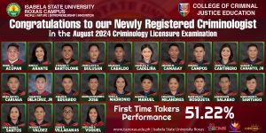 The Isabela State University-Roxas campus is celebrating a resounding victory as its newly registered criminologists achieved a remarkable 51.22% passing rate in the August 2024 Licensure Examination. This impressive performance is a testament to the dedication and hard work of both the graduating class and the university’s commitment to providing high-quality education. ISU-Roxas, through its rigorous curriculum and experienced faculty, has once again proven its ability to produce graduates who are well-prepared to excel in their chosen field.